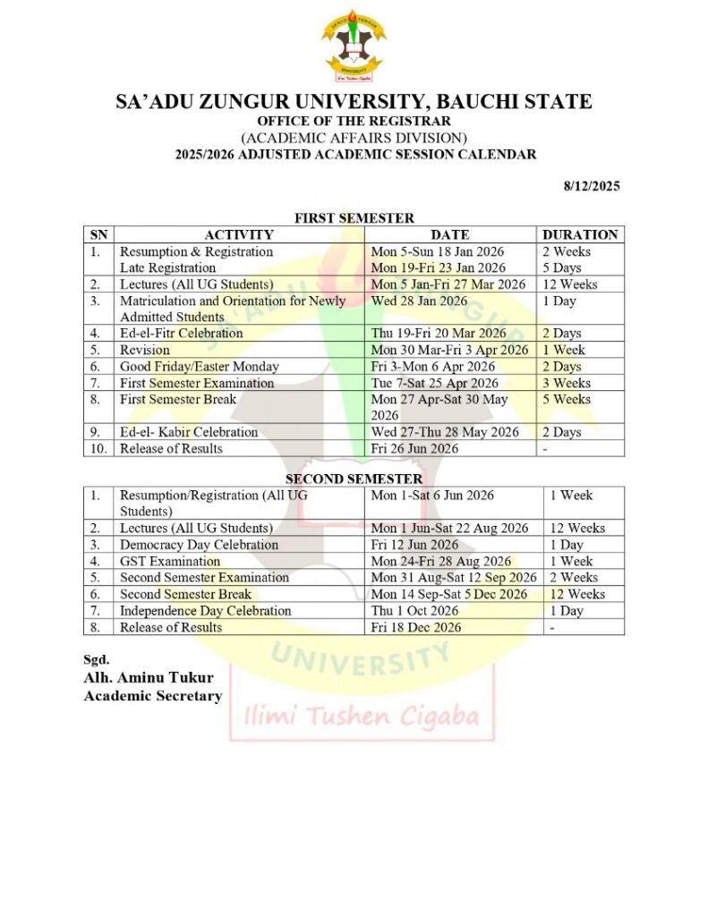 RELEASE OF SUPPLEMENTARY ADMISSIONS (UNDERGRADUATE PROGRAMMES) LIST FOR 2024/2025 ACADEMIC SESSION: INVITATION FOR PHYSICAL SCREENING Admissions, General / 11/01/2025 / By adamnoma@sazu.edu.ng